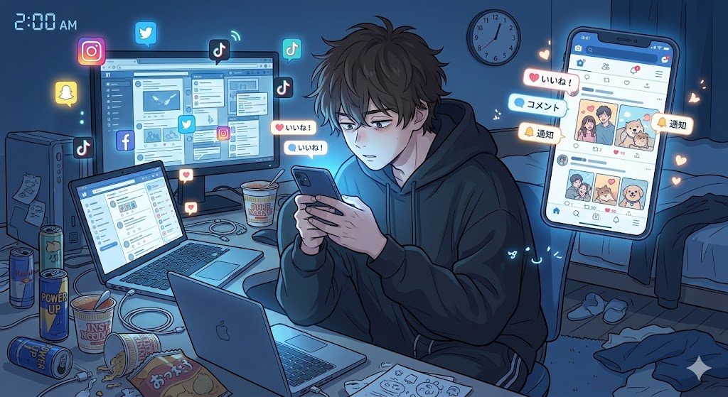 SNSの仕組みと、夜のコンディションが噛み合うと、誰でも同じことが起きます。